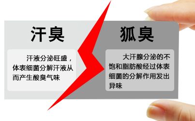 邯郸燕赵中医医院皮肤科医生介绍:腋臭又称狐臭,又叫臭汗症,是分布在体表皮肤如腋下、会阴、背上部位的大汗腺分泌物中,产生散发出的一种特殊难闻的气味,其发生的原因主要有两种情况:第一,因人体新陈代谢即人体汗腺(分泌汗液)异常分泌而产生的分泌物(汗液)中所含有机物质产生不饱和脂肪酸和氨基酸,经细菌分解作用后的结果;第二,因人体腋下体温及分泌物中的有机物是细菌生存的最佳环境,细菌大量的在此生成、繁殖,死亡后发出难闻的尸腐味道。